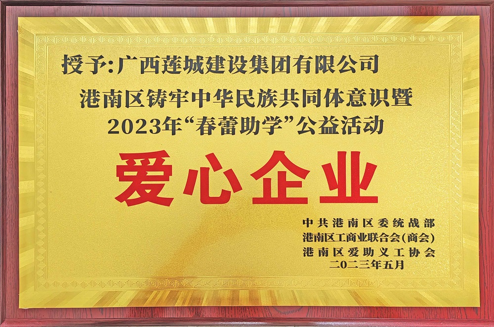 2023年度港南區(qū)“希望工程圓夢(mèng)行動(dòng)”活動(dòng)-愛(ài)心企業(yè)牌匾