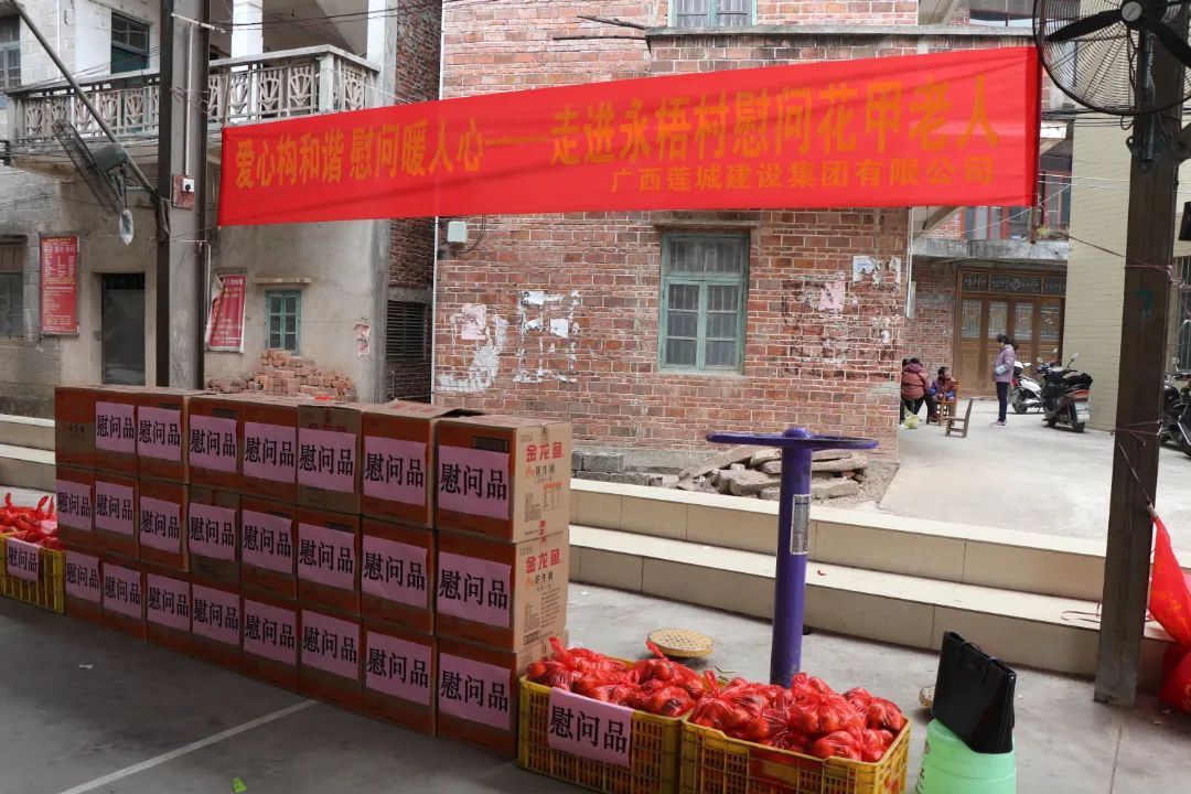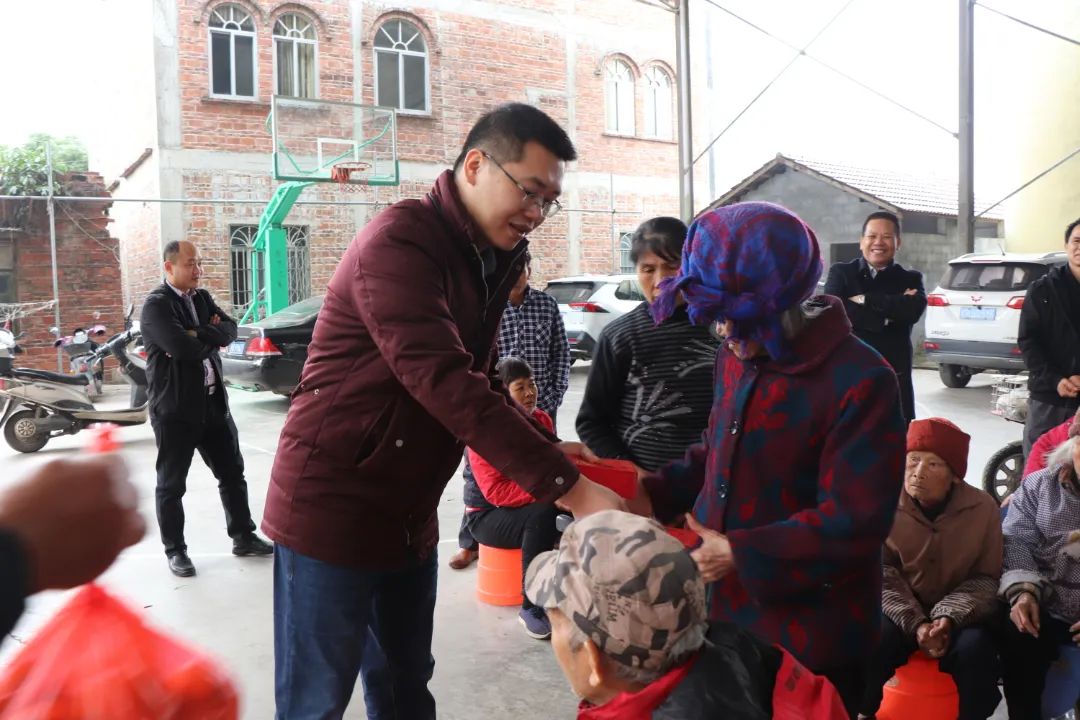 1月8日上午,集團(tuán)公司董事長譚燕喜,副總經(jīng)理、安全總監(jiān)譚景騰帶領(lǐng)員工代表前往橋圩鎮(zhèn)永梧村,開展“愛心構(gòu)和諧 慰問暖人心——走進(jìn)永梧村慰問花甲老人”活動(dòng)。