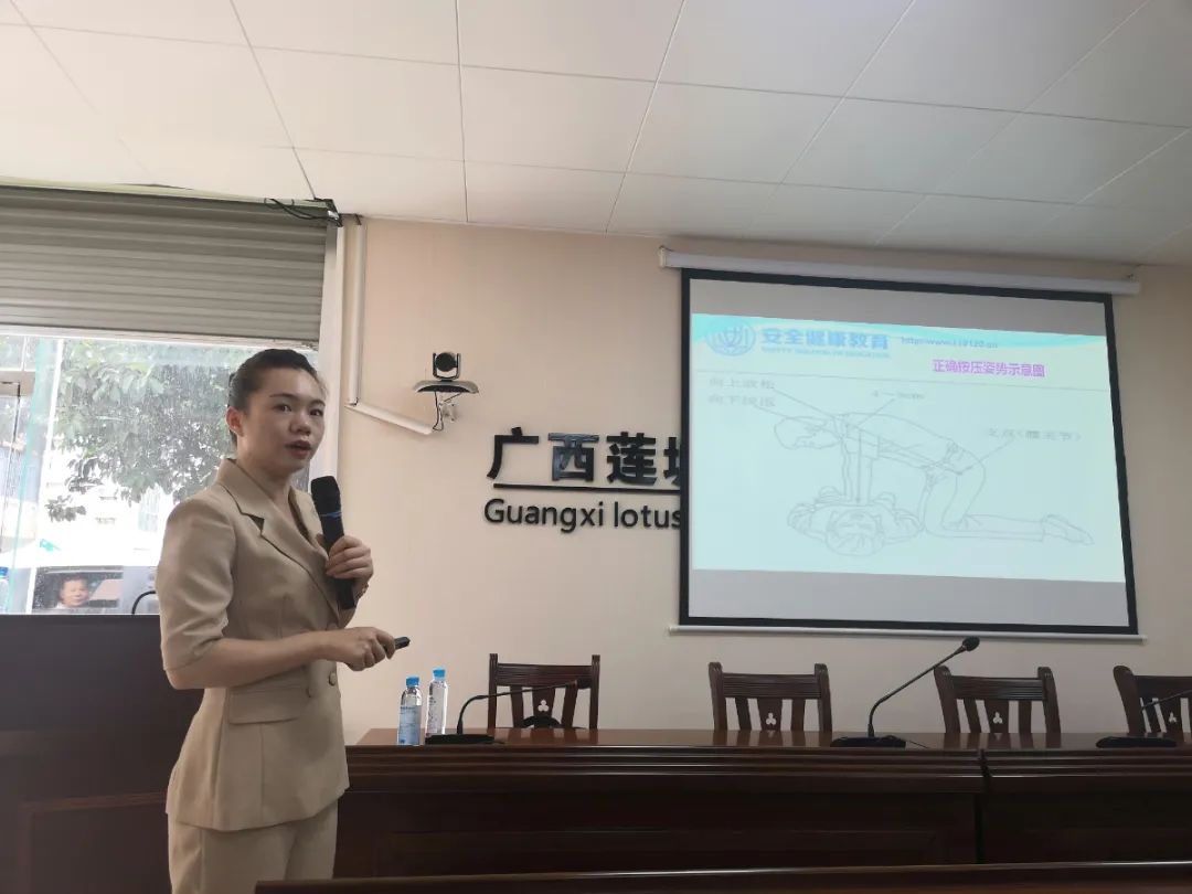 培訓(xùn)班上,宣教老師趙婷婷就“落實(shí)安全責(zé)任,推動(dòng)安全發(fā)展”為主題,給集團(tuán)公司全體人員開展公益宣教。宣教內(nèi)容主要有預(yù)防和應(yīng)對(duì)突發(fā)事故安全知識(shí),如CPR急救術(shù)、突發(fā)暈倒、受傷出血等。針對(duì)辦公室職工常見慢性病、職業(yè)病預(yù)防知識(shí)、干部職工“三減三健”健康生活方式、職工心理健康疏導(dǎo)及室內(nèi)外空氣污染的防護(hù)知識(shí)等作了深入淺出的詳細(xì)講解。