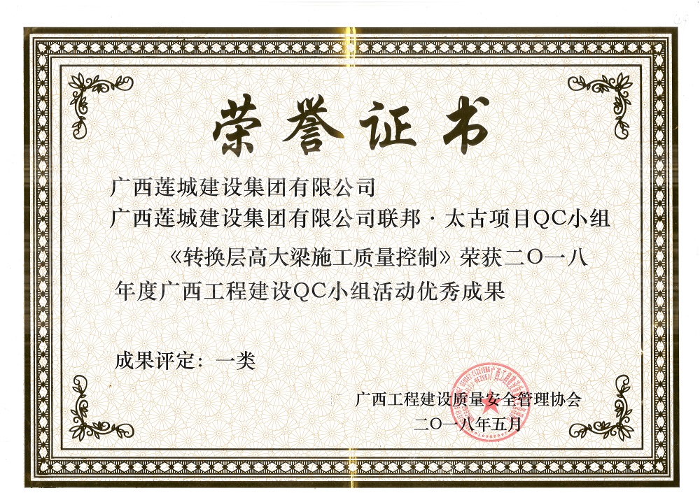 《轉換層高大梁施工質量控制》聯(lián)邦太古項目QC一類優(yōu)秀成果