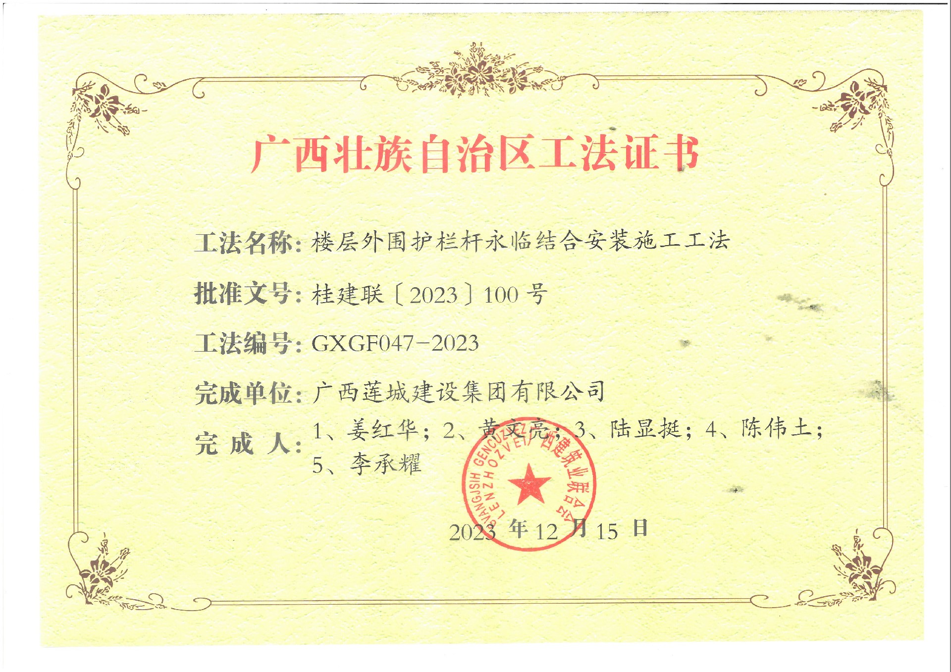 2023年廣西工法證書